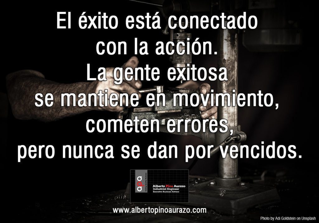 Exito Deja un comentario / Publicaciones / Por Alberto Pino El éxito está conectado con la acción. La gente exitosa se mantiene en movimiento, cometen errores, pero nunca se dan por vencidos.